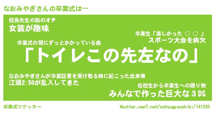 | 胡散臭い通販商品みたいなあだ名 | 『必ず成功する霊験あらたかなお札…その名も「なおみやぎ」』 |