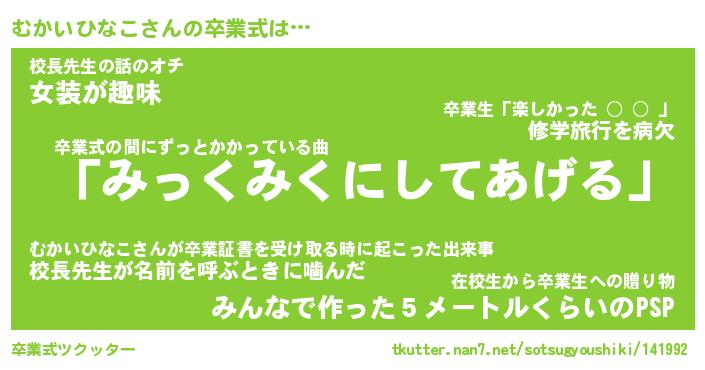| 男性向けラノベタイトル風あだ名 | 『むかいひなこの憂鬱』 |