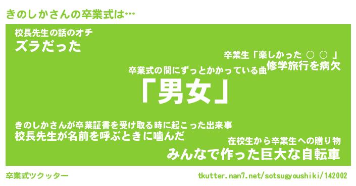 | ヘコむあだ名 | 『きのにゅー』『なまこ酢』『きのを』 |
