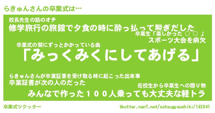 | 胡散臭い通販商品みたいなあだ名 | 『必ず成功する霊験あらたかなお札…その名も「らきゅん」』 |
