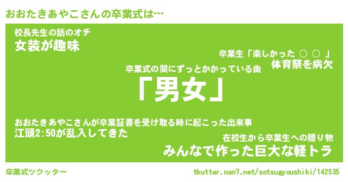 | 男性向けラノベタイトル風あだ名 | 『おおたきあやこの憂鬱』 |