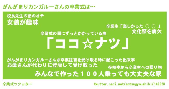 | 男性向けラノベタイトル風あだ名 | 『がんがまりカンガルーの憂鬱』 |