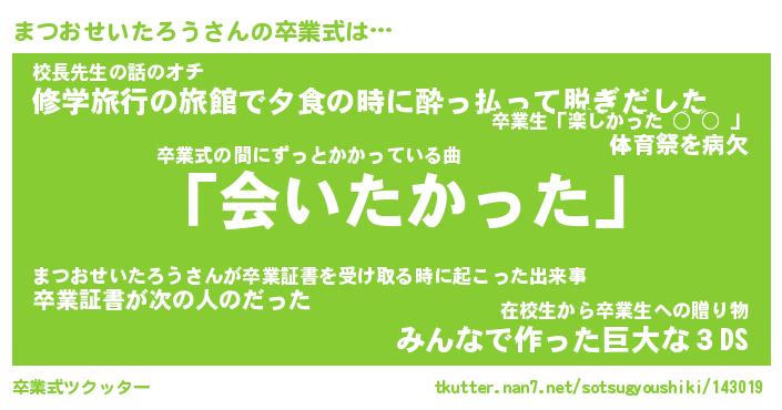 | ヘコむあだ名 | 『まつにー』『豆乳』『まつお』 |