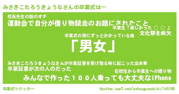 | 伝説のあだ名 | 『伝説のスナイパーみさきこたろうきょうな』 |