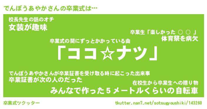 | 男性向けラノベタイトル風あだ名 | 『でんぽうあやかの憂鬱』 |