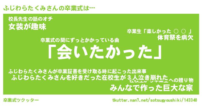 | 伝説のあだ名 | 『不死鳥のスナイパーふじわらたくみ』 |