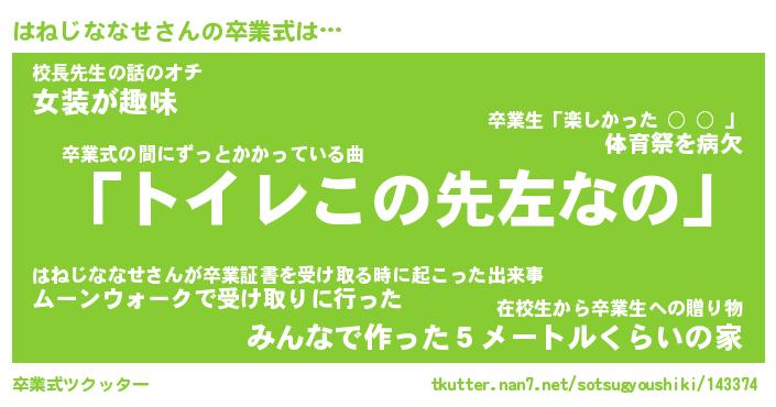 | 胡散臭い通販商品みたいなあだ名 | 『必ず成功するブレスレット…その名も「はねじななせ」』 |