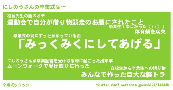 | 意味不明あだ名 | 『ペロリンにしのう』『永久保存にしのう』 |
