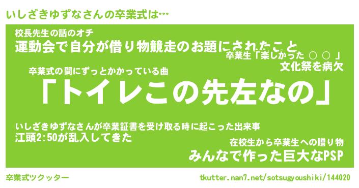 | 胡散臭い通販商品みたいなあだ名 | 『必ず成功するブレスレット…その名も「いしざきゆずな」』 |