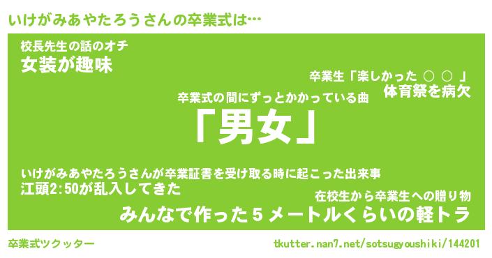 | 胡散臭い通販商品みたいなあだ名 | 『必ず成功する霊験あらたかなお札…その名も「いけがみあやたろう」』 |