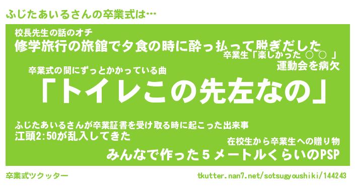 | 胡散臭い通販商品みたいなあだ名 | 『必ず成功するブレスレット…その名も「ふじたあいる」』 |