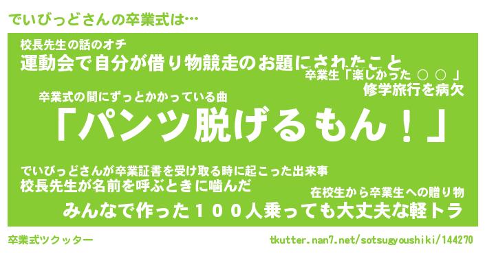 ヘコむあだ名 | 『でいっふぃ~』『豆乳』『でいっ子』 |