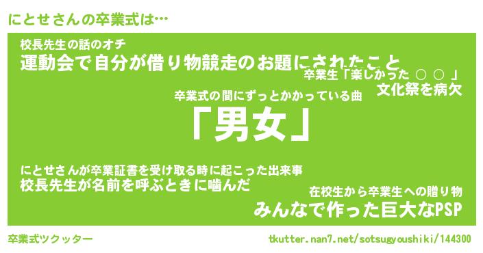 | ヘコむあだ名 | 『にとふぇ~』『つくし』『にとお』 |