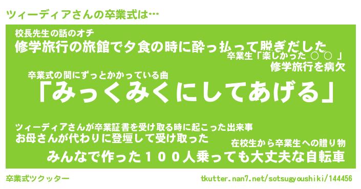 | ヘコむあだ名 | 『ツィふぇ~』『豆乳』『ツィっちょ』 |