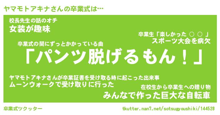 | 学校 | ヤマモトアキナ校長が勤める学校の名前『私立男子にょきにょき小学校』 |