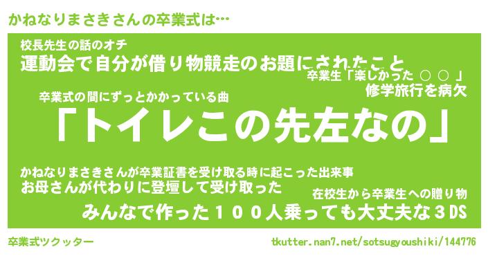 | 胡散臭い通販商品みたいなあだ名 | 『必ず成功する霊験あらたかなお札…その名も「かねなりまさき」』 |