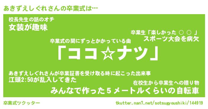 | ヘコむあだ名 | 『あきにゅー』『酢こんぶ』 |