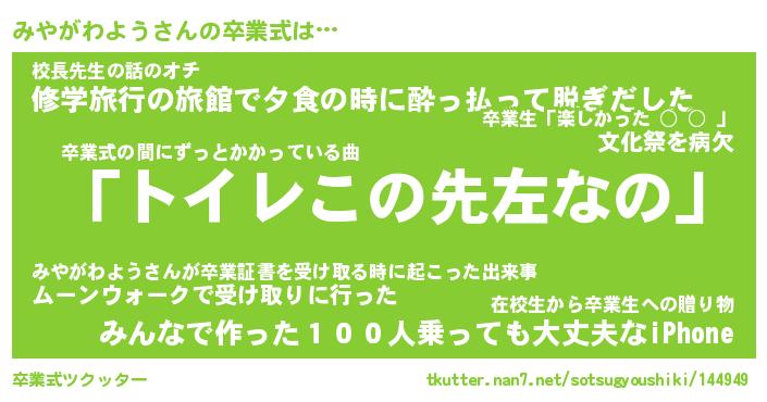 | 伝説のあだ名 | 『伝説のスナイパーみやがわよう』 |
