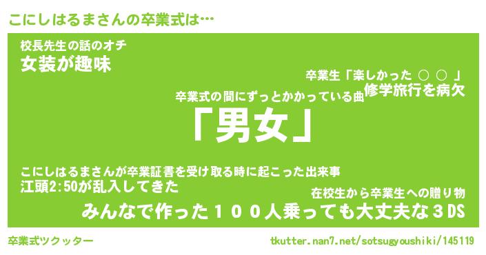 | 男性向けラノベタイトル風あだ名 | 『こにしはるまの憂鬱』 |