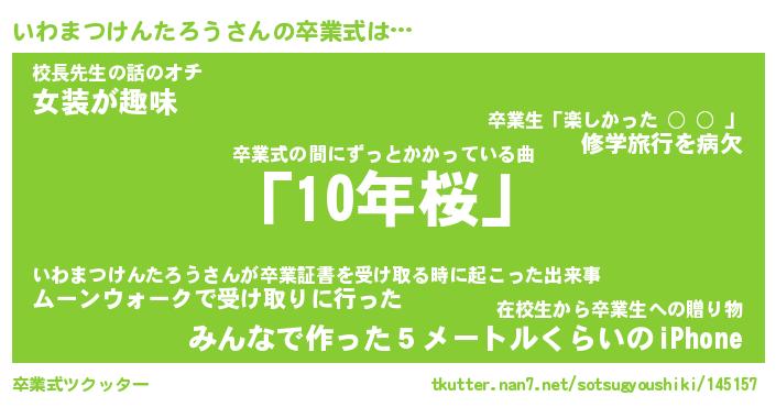 | 伝説のあだ名 | 『封印されしスナイパーいわまつけんたろう』 |