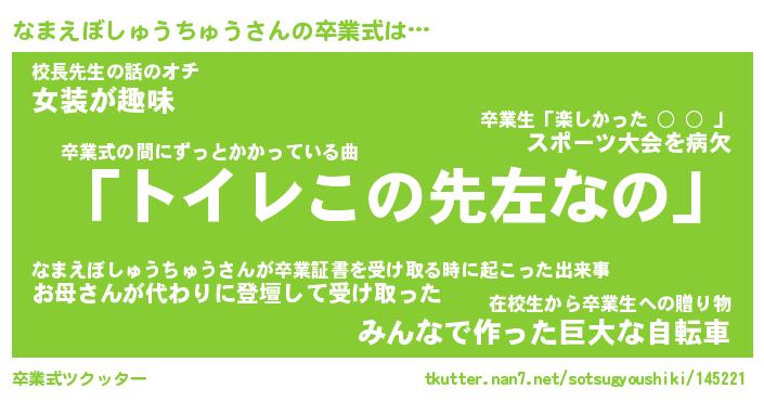 | 胡散臭い通販商品みたいなあだ名 | 『必ず成功するブレスレット…その名も「なまえぼしゅうちゅう」』 |