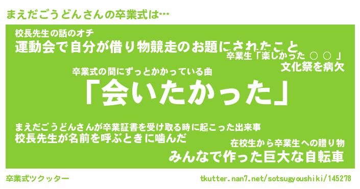 | 伝説のあだ名 | 『不死鳥のスナイパーまえだごうどん』 |