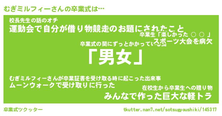 | 伝説のあだ名 | 『伝説のスナイパーむぎミルフィー』 |