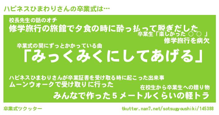 | 胡散臭い通販商品みたいなあだ名 | 『必ず成功する霊験あらたかなお札…その名も「ハピネスひまわり」』 |