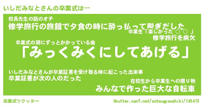 | 胡散臭い通販商品みたいなあだ名 | 『必ず成功するブレスレット…その名も「いしだみなと」』 |