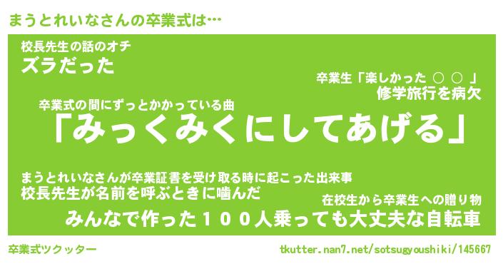 | ピコ太郎風あだ名 | 『マコ史郎』『ピマ二郎』『マウ一郎』 |