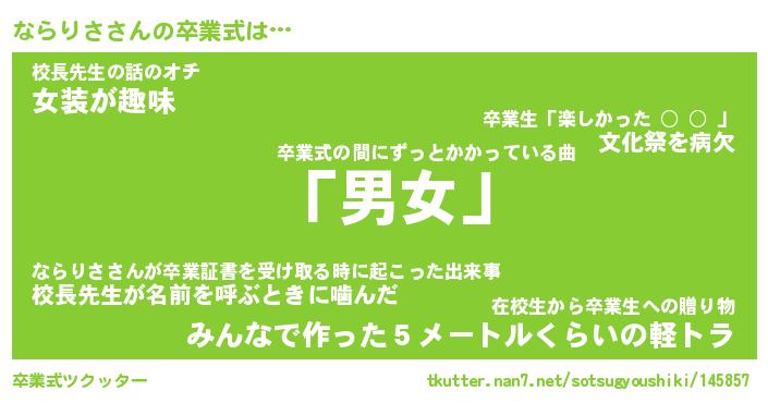 | 伝説のあだ名 | 『伝説のスナイパーならりさ』 |
