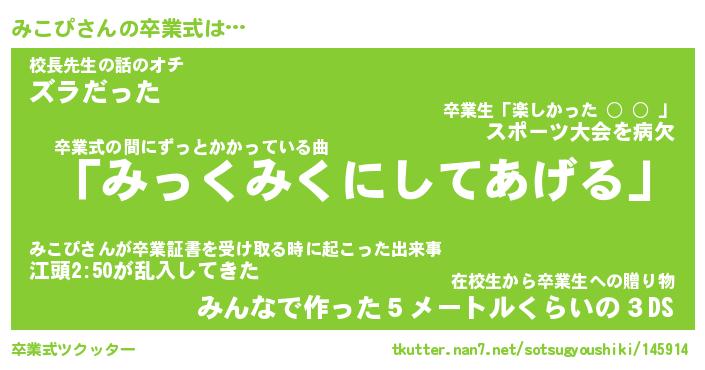 | ヘコむあだ名 | 『みこにゅー』『酢こんぶ』 |
