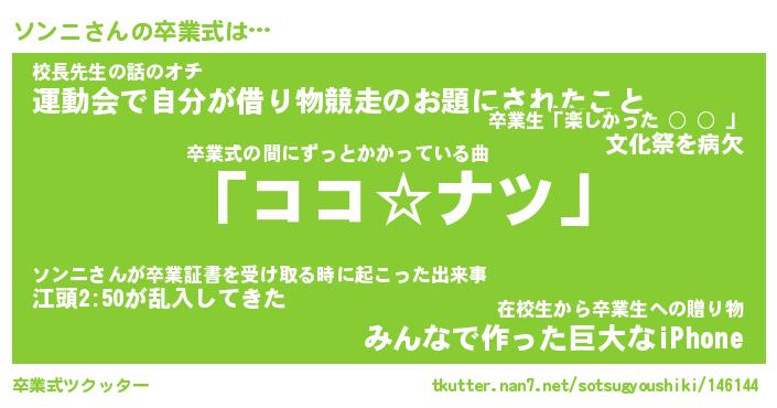 | ヘコむあだ名 | 『ソンにー』『なまこ酢』『ソンお』 |