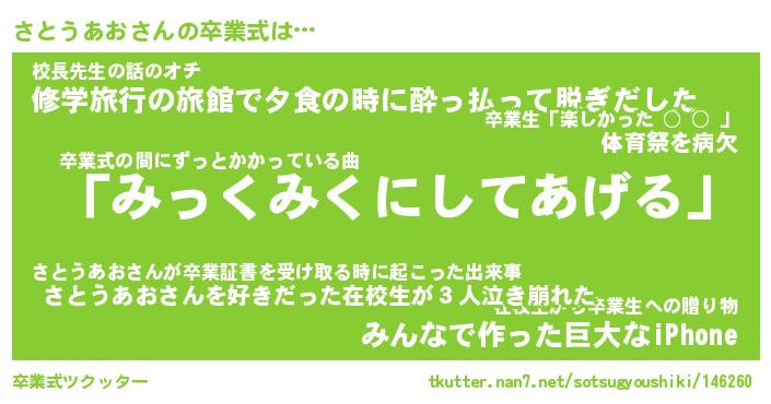 | 肩書あだ名 | 『さとうあお店長』『さとうあお国家主席』 |