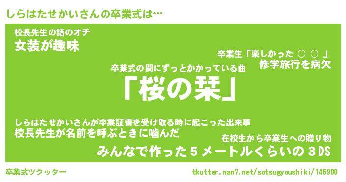 | 伝説のあだ名 | 『封印されしスナイパーしらはたせかい』 |