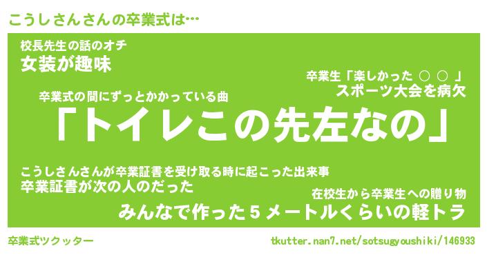 | 伝説のあだ名 | 『伝説のスナイパーこうしさん』 |