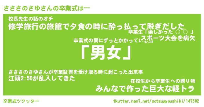 | 伝説のあだ名 | 『伝説のスナイパーさささのさゆ』 |