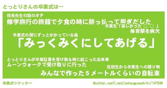 | 意味不明あだ名 | 『ペロリンとっとり』『永久保存とっとり』 |