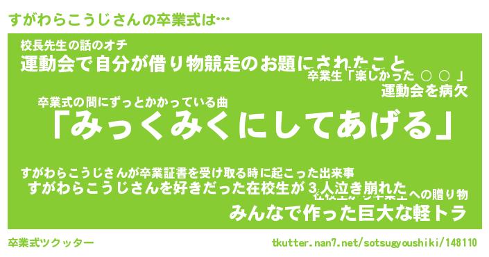 | 胡散臭い通販商品みたいなあだ名 | 『必ず成功するブレスレット…その名も「すがわらこうじ」』 |