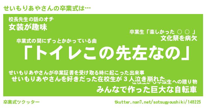 | 胡散臭い通販商品みたいなあだ名 | 『必ず成功するブレスレット…その名も「せいもりあや」』 |
