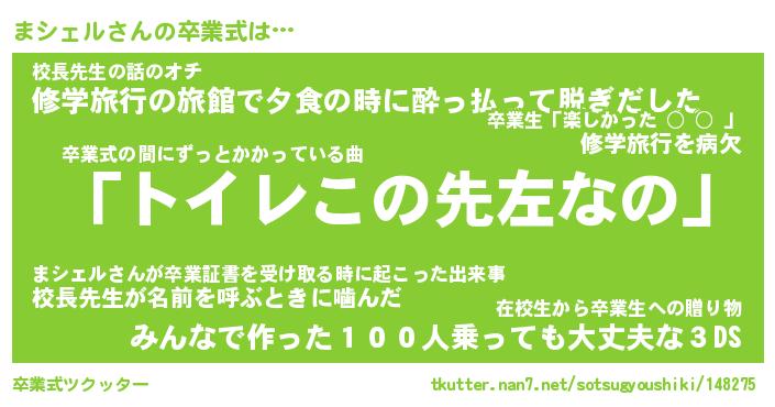 | 胡散臭い通販商品みたいなあだ名 | 『必ず成功するブレスレット…その名も「まシェル」』 |