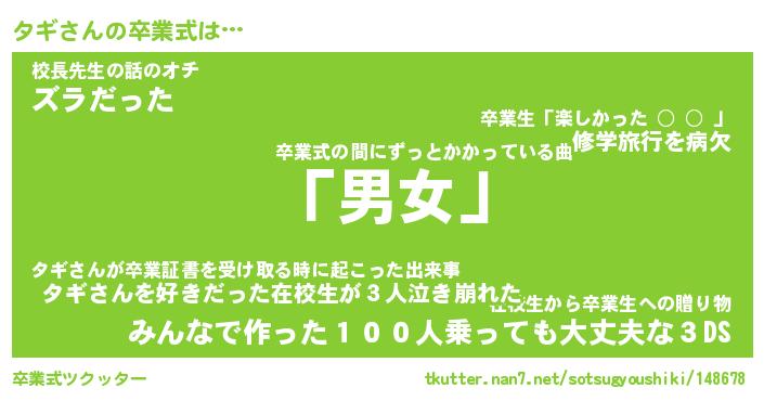 | ヘコむあだ名 | 『タギもー』『なまこ酢』 |