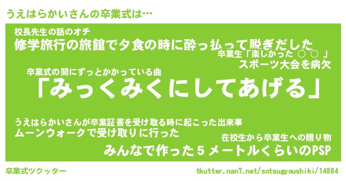 | ピコ太郎風あだ名 | 『ウコ五郎』『ピウ太郎』『ウエ六郎』 |