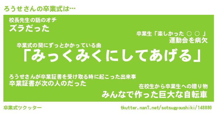| 胡散臭い通販商品みたいなあだ名 | 『必ず成功するブレスレット…その名も「ろうせ」』 |