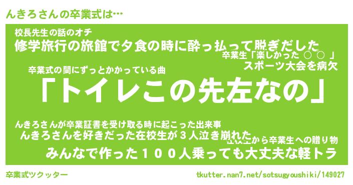 | 伝説のあだ名 | 『伝説のスナイパーんきろ』 |