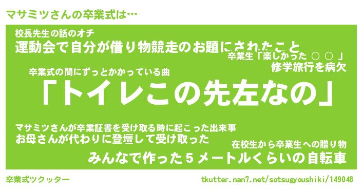 | 胡散臭い通販商品みたいなあだ名 | 『必ず成功するブレスレット…その名も「マサミツ」』 |