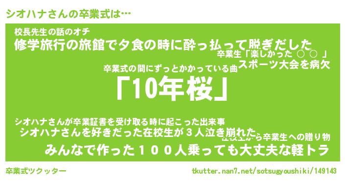 | 意味不明あだ名 | 『ペロリンシオハナ』『永久保存シオハナ』 |