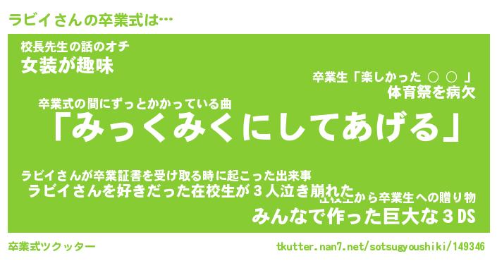 | ヘコむあだ名 | 『ラビもー』『レバニラ』『ラビお』 |
