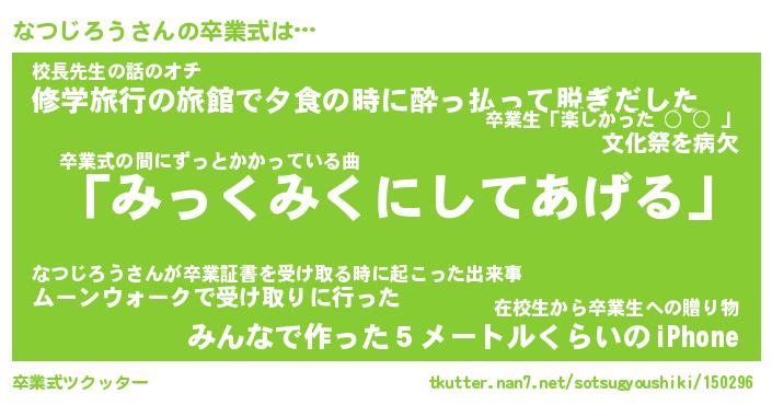 | 胡散臭い通販商品みたいなあだ名 | 『必ず成功するブレスレット…その名も「なつじろう」』 |