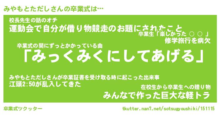 | ヘコむあだ名 | 『みやにゅー』『つくし』『みやお』 |